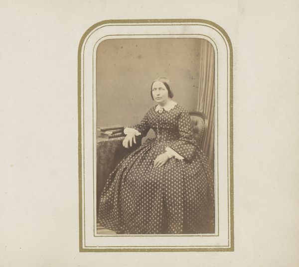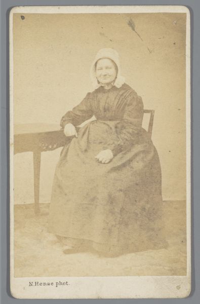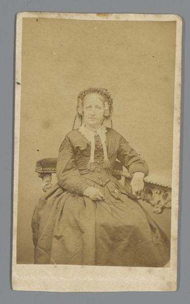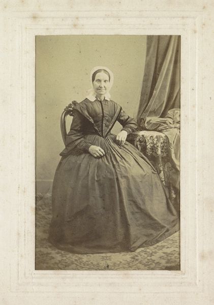 Curator: Let’s take a look at this intriguing photograph. It’s titled "Portrait of an Unknown Woman with Child in her Lap" by Johann Heinrich Martin Bosse, created sometime between 1870 and 1883. The medium is gelatin silver print, a relatively early photographic process. Editor: It has a hauntingly sweet and intimate feeling. The light is soft, and they’re posed in a very direct, almost confrontational way. It draws you in, making you wonder about their story, especially as unknown subjects of history. Curator: Indeed. This image offers us insight into the social context of late 19th century photography, particularly in its function as a document of family and class identity. How was this staged for the middle class of the Netherlands? And for whom did they produce these images? Editor: Exactly. The act of portraying themselves becomes political. Their clothing is telling. The woman’s dark, patterned dress speaks to societal constraints. Yet the baby in white—almost floating—has this sense of untarnished innocence. It’s about the representation of motherhood itself, then and now. Who has the privilege to be portrayed as a "Madonna?" Curator: Furthermore, consider the limitations placed upon Bosse, a photographer, to conform to established ideas of portraiture which themselves, borrowed directly from the academic painting tradition. Did he break the tradition by leaving his subjects "unknown"? Or, how might we rewrite our ideas around identity today, through viewing previously unstudied or marginalized photographs? Editor: It does make you reflect on these often anonymous women. To me, their story highlights gender inequality in the 19th century through a 21st century lens. These power dynamics influenced whose stories were told, and by whom. Curator: These photographs provide crucial visual records that counter those narratives. By examining Bosse's work and photographs like these we better understand their visual importance, how they reflect lived experience, and shape ideas about family, memory and history in contemporary life. Editor: Absolutely. This piece, for me, has reinforced how powerful it is to reconsider even seemingly simple, "lost" narratives.