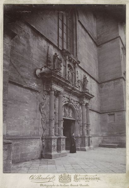 The Bisson Frères created this photograph of the Bibliothèque Imperial du Louvre in Paris around 1852-1863. The dominant structure of the image is immediately striking, framed by ornate columns and detailed stonework, all rendered in sepia tones. This emphasis on architectural form invites us to consider how the photograph engages with the historical context of its creation. Photography at this time was deeply intertwined with documentation, and here, the Bisson Frères capture the Louvre not merely as a building but as a symbol of imperial knowledge and power. The symmetrical composition and the meticulous detail with which the façade is rendered suggest an attempt to impose order and clarity onto the world. Consider how the interplay of light and shadow emphasizes the texture of the stone. This reflects a broader artistic concern with materiality and representation, hinting at the complex ways in which photography could both reveal and construct meaning. The photograph challenges fixed notions of representation, inviting ongoing interpretation of its cultural and philosophical resonance.