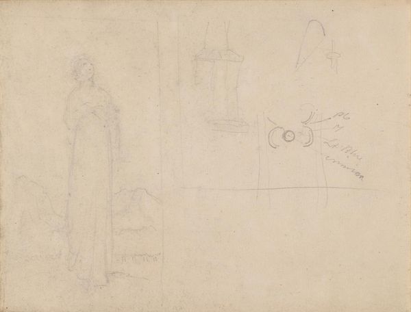Editor: Here we have Christen Købke's "Figurrids og et rids af et hoved" from 1836, a pencil drawing. There's a sort of lightness and quickness to the sketch that really grabs me. What strikes you when you look at this work? Curator: Well, for starters, there's an immediate intimacy, isn’t there? Like stumbling upon a private thought made visible. Imagine Købke, perhaps on a quiet afternoon, observing, then distilling what he sees into these delicate lines. Do you get the sense that he's more interested in capturing a feeling, a fleeting impression, than striving for meticulous accuracy? The one figure almost seems to be in action at an easel! What do you suppose? Editor: I do, that makes a lot of sense! It looks like a snapshot of a moment, informal and definitely immediate. It does feel like he is sketching something that may have captured his attention, like a painter in the making! Curator: Precisely! And notice how the isolation of each figure actually enhances that sense of fleeting observation. It's like glancing at pages of a sketchbook rather than a highly composed portrait. He's thinking out loud on paper, you could say. It makes one wonder, doesn't it, what worlds these sketches were destined to become, even if just on paper! Editor: Definitely a thought to linger on! Thanks for sharing your insight. It brings a fresh layer of depth to this artwork for me. Curator: My pleasure entirely. It’s delightful to muse over art’s mysteries. And as always, there's more than one way to look at these drawings and the worlds they may reflect, huh?