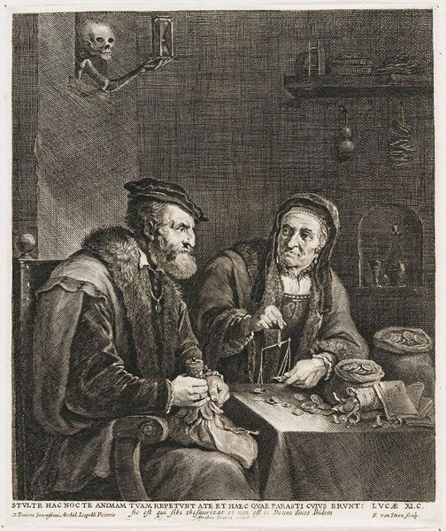 Adriaen van Ostade created this etching, "The Call," sometime in the 17th-century Netherlands. The image presents an intimate scene of everyday life, a moment of connection or perhaps negotiation between an older man and woman. But what kind of 'call' are we witnessing here? The Dutch Golden Age was shaped by a burgeoning merchant class and new civic institutions. Ostade, like many artists, found a ready market for genre scenes depicting peasant life. Yet, these images were never neutral. Cultural references of this time reveal an emerging fascination with morality and domesticity. Ostade's scene, with its attention to humble interiors and rustic characters, reflects the complex social attitudes of his time. Is this a celebration or a cautionary tale? To interpret this work, we need to consider the social conditions of the Dutch Republic, consulting historical documents, literature, and material culture to fully understand the meaning of art as contingent on its context.