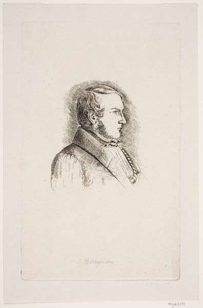Curator: This is P.C. Skovgaard’s drawing of “Major Blom,” created in 1848. The piece, held here at the SMK, utilizes ink and printmaking techniques. It’s quite a striking portrait. Editor: My immediate reaction is to the subject’s aged, world-weary countenance. He’s gripping his coat as if warding off a chill, a tangible manifestation of perhaps internal discomfort, making one contemplate the weight of his experiences. Curator: I’d say that sentiment is likely correct; think about the era and the specific role the sitter occupies. As a Major, Blom would likely have been involved in various political and social issues. Editor: Exactly. What narratives might be intentionally, or unintentionally, embedded within the portrayal of this older military officer? His grip on his coat, that weary look, perhaps point to a crisis of masculinity or shifting power dynamics within Denmark at the time? This drawing challenges us to reconsider what societal norms may have affected people such as Major Blom. Curator: Skovgaard positions this within a larger art historical context too. The use of ink and print draws on historical traditions of portraiture designed for circulation within a specific social sphere. He emphasizes Blom's individuality, placing value on his particular contribution to Danish society. Editor: The way in which he utilizes a traditionally accessible technique to commemorate and celebrate individuality is quite compelling. Is it, in effect, a democratizing of representation, subtly subverting the traditional hierarchy of artistic subject and social status? What avenues might such works open for reconsidering other potentially marginalized identities of that time? Curator: That's a stimulating approach. Looking at the work within a framework of art's capacity for broader representation really shows Skovgaard's lasting impact, even within the confines of traditional portraiture. Editor: Precisely, the dialogue continues.
