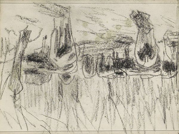 Editor: Here we have Anton Mauve's "Landschap," a landscape drawing from around 1881-1888. It's graphite on paper and... very atmospheric! I'm struck by how much is conveyed with so few, yet carefully considered, strokes. What do you see in this piece? Curator: What strikes me is the clear depiction of labor, albeit subtly embedded in the natural landscape. Notice the marks made in the graphite, suggesting a hurried yet deliberate application. The use of inexpensive materials like graphite and paper challenges the high art expectations of the period. Do you think Mauve’s choice of such rudimentary materials affected how this piece was received by art patrons during the Impressionist movement? Editor: I hadn't considered that aspect of its reception. The Impressionists were after all focused on fleeting moments and light, so how do we understand the emphasis on labor then, beyond the use of economical materials? Curator: Look at how the rapid marks create depth and texture; there's a definite emphasis on portraying not just the *what* but also the *how*. The materiality emphasizes the artist’s physical interaction with the landscape through their labor and the means of representing it. Editor: So, rather than just capturing a scene, Mauve’s drawing emphasizes the act of creating the scene itself – the physical labor of both artist and subject, filtered through his choice of materials. Curator: Precisely. We witness an engagement with production beyond the purely visual. It provokes questions about value, worth, and even the social context surrounding artistic creation and our consumption of art. Editor: That reframes how I see not just the landscape depicted, but Mauve's relationship to it and, really, to the art world of his time. It makes me appreciate his conscious choice of "humble" materials even more! Curator: It’s a valuable reminder to consider how artists like Mauve engaged with societal norms around material production.