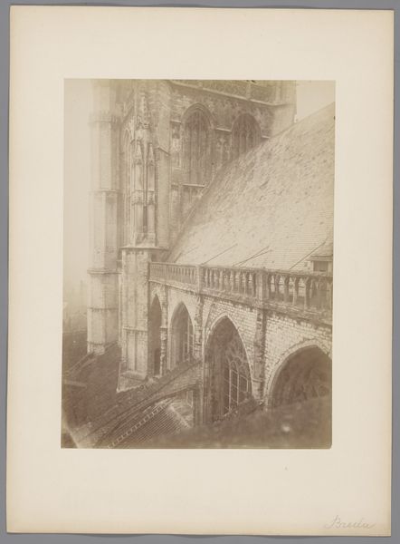 This photograph captures the north side of the Grote or Maria Magdalenakerk in Goes. Taken by an anonymous photographer working for Monumentenzorg, it freezes a moment in May 1900. Consider how the photograph, produced by an anonymous figure of the Monuments Department, monumentalizes architecture. It transforms a building, a place of social gathering and religious significance, into a silent, looming object. This representation invites us to reflect on the power structures inherent in preservation and documentation. The stark, almost ghostly depiction of the church encourages a contemplation of the passage of time and the complex relationship between history, memory, and identity. How does the act of documenting spaces shape our understanding of history, and whose stories are prioritized in this process? This image captures a building, but also hints at a deeper narrative about cultural heritage and the politics of preservation.