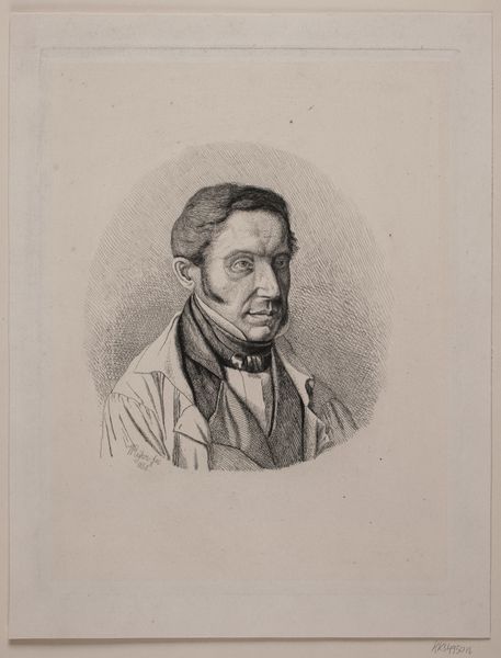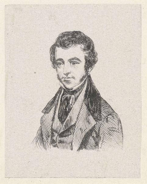 Editor: So, this is "Portret van Jacobus Theodorus Abels," made in 1842 by Monogrammist M using graphite. It’s a detailed portrait... almost photographic, despite being hand-drawn. I’m struck by the detail in the clothing, actually. What draws your attention when you look at it? Curator: The most compelling aspect for me is the very materiality of the piece. Consider the graphite itself: mined, processed, and then wielded to create this image. And what does that process reveal about the social context? The sitter, likely affluent to afford a portrait. The artist, skilled, making a living through draftsmanship. It reflects the emerging market for portraits alongside developing extraction economies. Editor: That's fascinating! I hadn't considered the graphite itself as part of the story. Do you think the medium itself influenced the style? Curator: Absolutely. Graphite allowed for a level of detail and realism not easily achievable with other drawing media of the time. The density of the lines, carefully controlled, creates textures – think about the way the jacket and cravat are rendered. It simulates a weave and provides a palpable sense of the subject's material status. Editor: So, the choice of graphite wasn’t just about ease; it was about representing wealth and status through material simulation. Curator: Precisely. The work speaks volumes about production – of both the art and social standing. Every stroke speaks of craft, industry and privilege in that period. Editor: I’m seeing it in a completely different light now. Thinking about where the materials came from and how they were used adds a whole new layer. Curator: Indeed. Focusing on the material reveals that the artistic means and the social circumstances were inherently related in the final image. Editor: That’s been incredibly insightful. It really makes me appreciate the art and its wider context. Curator: A material perspective highlights that art is a product, of material means, reflecting broader economic realities and cultural values.