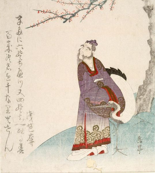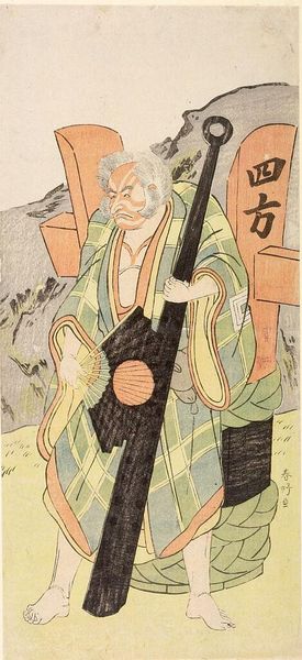 Editor: This woodblock print, "RokujÅ HÅgan Tameyoshi," by Yashima Gakutei, depicts a warrior in elaborate armor. It's the level of detail in the armor that really strikes me. What can you tell me about this piece, especially considering the materials and production? Curator: Notice how the printmaking process itself, the carving of the blocks and application of pigment, elevates the warrior's status. The armor isn't just protection; it's a product of skilled labor. Consider the social context: who consumed these prints and what message did the emphasis on such craftsmanship convey about power and class? Editor: So, the materiality of the print, the very act of its making, speaks to the warrior's status and the social structure of the time? Curator: Precisely. It highlights how art serves as both a reflection of and a participant in material culture. Editor: I never thought about it that way. It's fascinating how the materials themselves tell such a complex story.
