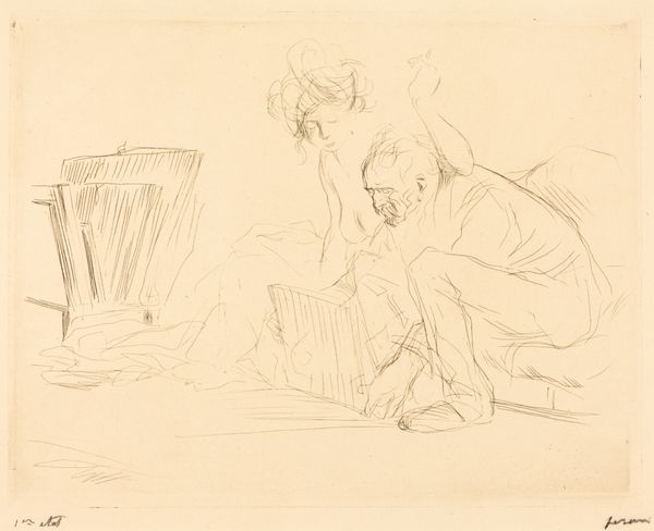 Editor: So this is "The Model," an ink drawing attributed to James Ensor, date unknown. There’s a figure drawing a statue of a nude figure. It looks almost like a snapshot of the artist in action, really informal. How do you interpret this work? Curator: This seemingly simple drawing actually opens up several avenues for exploration, especially if we consider Ensor's broader artistic and social context. Ensor often critiqued bourgeois society and its hypocrisies. The figure studying a nude sculpture invites us to reflect on the gaze itself. Who is allowed to look, and at whom or what? The academic setting, hinted at by the classical statue, traditionally excluded many, particularly women and people of color, from participating fully in the art world. Is Ensor acknowledging that inherent power dynamic here, or perhaps critiquing it? What do you think? Editor: That's a compelling point about the gaze. I hadn’t considered the power dynamics at play. It feels like he is part of the established, academic process without outwardly challenging it. Curator: Precisely. The loose, sketch-like quality, though, might suggest a subtle form of resistance against rigid academic conventions. Ink, as a medium, has its own history. And combined with the date on the bottom, 1931, this might hint to questions of what "modern" art can or should look like. How do we continue old traditions versus how we look forward and evolve them? Editor: So it’s like he's operating within the system, but maybe questioning its foundations through his style and subject matter? Curator: Exactly. By drawing attention to the act of observation and the historical constraints surrounding it, Ensor prompts us to critically examine the very institutions that shape our understanding of art and beauty. Editor: That makes me see the drawing in a completely new light. It’s more than just a study; it's a commentary. Curator: Absolutely. Art is never created in a vacuum. Understanding the historical and social context allows us to engage with the artwork on a deeper, more meaningful level.