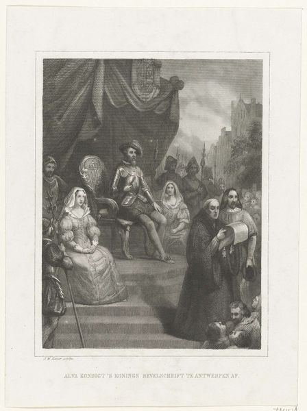 Editor: This is a 1749 engraving by Jan Caspar Philips, titled "Cartouche met allegorie op Carthago," which translates to "Cartouche with an allegory of Carthage." It's incredibly detailed, almost overwhelmingly so. I’m curious, what stands out to you in terms of its symbolic content? Curator: Well, it's interesting how the image weaves together destruction and the promise of history. Do you see how the central figure, presumably representing a Roman soldier, is about to strike the globe? Carthage, symbolized by the female figure and alluding to its dominion, is about to be eclipsed. The putti hovering above, one holding what looks like a sacrificial lamb and the other a palm, suggest themes of sacrifice and victory intertwined, carrying heavy religious connotations. Editor: Yes, I see what you mean. The lamb and the palm seem like opposing forces or outcomes, perhaps suggesting a necessary destruction leading to some sort of… peace? Is that stretching it too far? Curator: Not at all. Notice how these symbols flank medallions with portraits? Symbols frame powerful figures throughout history. But how do we reconcile the small figures below holding the scroll referencing Carthage, while the main image depicts its symbolic demise? It creates a curious tension between memory and erasure. It reminds me that even in ruins, history persists in visual culture. Editor: That’s a really interesting point. So even as the engraving depicts the downfall of Carthage, it’s also preserving its memory, its *iconography*, through these very symbols and allegories. Curator: Precisely. What once represented power and dominance is reinterpreted as a symbol of loss. Think about the cultural weight carried by symbols throughout different eras – do they truly die, or are they simply reborn? Editor: That gives me a lot to think about. I initially just saw a busy image, but now I recognize layers of meaning, about the complex relationship between victory, destruction, and historical memory, all condensed into a single scene. Curator: Indeed, the layers reflect how we continually rewrite and reimagine our collective narrative. This single engraving functions almost like a palimpsest.