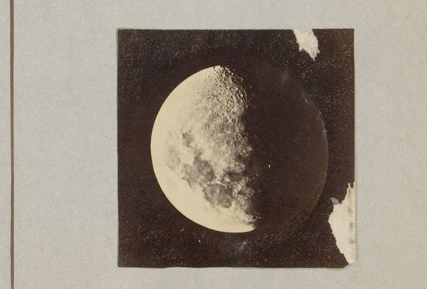 Editor: This fascinating gelatin silver print, “Gezicht op de maan,” credited to Loewy et Puiseux and dated before 1898, captures a half-illuminated moon with stunning clarity. The stark contrast between light and shadow immediately draws me in. What's particularly striking is the scientific nature presented in an aesthetic manner. What sociopolitical elements contributed to an image like this being created and displayed? Curator: The late 19th century saw a surge in scientific exploration fueled by imperial ambitions. Mapping the heavens was as crucial as mapping colonial territories. Images like these, appearing within a broader "Atlas lunaire," served both a scientific and a cultural function. They represented progress, knowledge, and the ability to tame the unknown, projecting an image of dominance associated with burgeoning Western powers. Consider how the very act of observation, then meticulously recording and publishing such imagery, reinforced social hierarchies. Editor: So it's less about the moon itself and more about what the image *represented* to society at the time? How did the institutions, like the Paris Observatory, shape this artistic output? Curator: Exactly! The Paris Observatory wasn’t just a place of research, but also a powerful institution defining standards of knowledge and legitimizing particular visual representations. Their involvement conferred authority. These images likely circulated within specific scientific communities, but also filtered into popular culture through publications and exhibitions, shaping public perception of science and France's global position. Is there anything in the compositional choices here that hints to a larger narrative, you think? Editor: The placement of the photograph adjacent to an annotated diagram definitely reinforces that scientific intention you mentioned. Now I'm considering it beyond just its aesthetic beauty, and more as a political symbol packaged in scientific form. Curator: Precisely! Hopefully, it offers insight into the multilayered contexts influencing its creation. Remember, art rarely exists in a vacuum; its reception is as important as its creation. Editor: That really changes how I view photographs from this era. I will be keeping the concept of ‘progress’ and ‘authority’ in mind now. Thanks so much for this helpful contextualization!