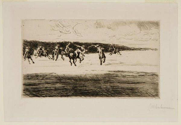 Arnold Friedman created this drawing, entitled "Racetrack," using pencil on paper. Look closely at the way he’s built up the image bit by bit, almost like he's knitting with graphite. It's a process of accretion, a slow accumulation of tiny marks that come together to form a whole world. I’m drawn to the way the texture of the paper seems to breathe through the image, giving it a life of its own. See how he’s rendered the crowd in the foreground with these quick, almost scribbled lines, while the horses on the track are more carefully delineated, caught in mid-stride. The dark mass above the racetrack, is it a canopy, is it night, who knows! This reminds me a bit of some of Milton Avery’s more pared-down works, where he uses color and form to suggest rather than define. Both artists share a similar sensibility, a willingness to embrace ambiguity and let the work remain open to multiple interpretations.