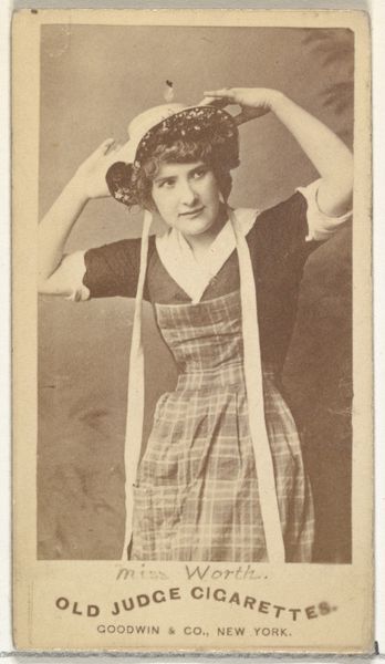 Editor: Here we have a rather unusual piece: a promotional card, titled "From the Girls and Children series (N64) promoting Virginia Brights Cigarettes for Allen & Ginter brand tobacco products", dating back to 1886. It seems to be made of coloured pencils and is on display at the Metropolitan Museum of Art. I must say, it's strange to see children and cigarettes combined like this. What do you make of this peculiar juxtaposition? Curator: Well, it certainly does grab your attention, doesn’t it? On the surface, it’s unsettling by today's standards. We look at it with modern eyes and instantly bristle at the marketing of cigarettes with an image of youth. Back then, though, tobacco cards were more like baseball cards, collectibles inserted into products. They featured everything and everyone – actresses, animals, even foreign flags. So, this girl is presented like any other commodity. Almost like... art for commerce's sake. It feels both whimsical and deeply unsettling. Does that make sense? Editor: It does. It's a clever observation of it being like a baseball card. So, the card, aside from being advertisement, was like a little window into that era. Curator: Exactly! What do you see in her expression? It almost tells a little story on its own. There is an implied social narrative isn't it? It invites us to imagine the life and expectations surrounding girls during that era. It is fascinating how art and culture weave together, sometimes in ways we least expect! Editor: That’s a good point. Thinking about it that way, you almost forget the cigarette part. Looking closer, she actually has an interesting gaze. The perspective changes. It is almost possible to understand more by disregarding the immediate impression of the artwork. Curator: Absolutely. It is strange isn't it? Looking beyond what's initially presented is often where the real conversations begin! What I like about art is that a simple piece carries so much more weight if observed carefully. Editor: Thanks for making me consider this historical and social setting. It enriches the overall story being told!