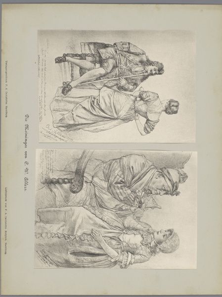 These two photographic reproductions of drawings, by F.A. Dahlström, depict actors in costumes and scenes on a stage. Note the recurrence of the theatrical motif, evoking the ancient Greek tradition of masks to amplify emotion and character. The actors, caught in moments of high drama, unconsciously draw upon a wellspring of collective memory. This evokes the gestures of mourning, of despair, and of conflict – emotions that are deeply ingrained in the human psyche. Consider the image of the figure lying prone. Echoes of the fallen warrior, seen throughout antiquity, resurface in modern drama. This symbol transcends epochs; the body slumped, limbs askew, embodies vulnerability and the ultimate surrender. This image stirs profound subconscious reactions in viewers, prompting introspection on mortality and the shared human experience of loss. The drawings reveal the cyclical and non-linear trajectory of these symbols. They are constantly re-emerging and evolving to acquire new significances through varying historical settings.