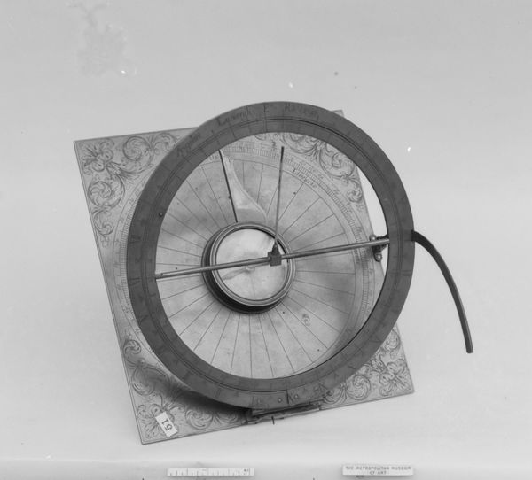 Editor: Here we have a metal "Portable Equatorial Sundial," crafted around 1701 by Dominicus Lusuerg. The intricate detailing on such a small scale is impressive. It’s… strangely elegant, almost like a tiny Baroque monument. What do you make of this piece? Curator: Ah, yes! This whispers of a time when science and artistry danced cheek to cheek. Imagine carrying this, a miniature cosmos in your pocket, using the sun to orient yourself...I bet you wouldn’t see many doomscrolling in those days. It speaks of curiosity and a deep connection to the rhythms of nature, wouldn't you agree? And of course, this was designed for somebody who wanted to be punctual, even without their iPhone! Do you think objects like this one still capture the imagination? Editor: Absolutely! The craftsmanship is fascinating, but I also wonder about the owner – who carried it, where they travelled… it sparks so many stories! Curator: Exactly! Its owner probably lived a life guided by both sunlight and faith; a blend we may never quite understand today. It’s a tangible link to that era, like finding a secret message tucked inside time itself. And it asks such lovely questions of our digital age, don't you think? Editor: Definitely food for thought. I'd never considered a sundial as such a personal, intimate object. It makes history feel so much closer. Curator: Yes. And you just may never be late again.