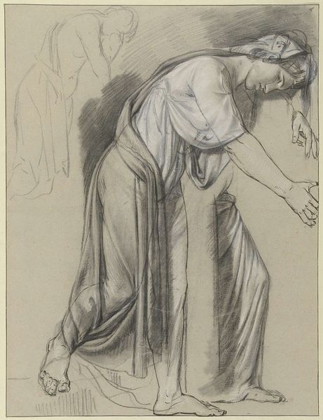 Edward Burne-Jones made this preparatory drawing for a stained-glass window, likely in the late 19th century, using graphite on paper. The image depicts the prophet Samuel in a flowing garment. Burne-Jones masterfully utilizes graphite to capture the subtle gradations of light and shadow that define Samuel's form, and the drapery that envelops him. The weight of the lines vary, to suggest Samuel's three-dimensional form. This is not just a drawing, but a cartoon – a full-scale preparatory design intended to guide the fabrication of the final stained-glass window. This reveals the labor-intensive process behind stained glass, involving skilled artisans cutting, painting, and assembling pieces of colored glass. The social context of this work lies in the Arts and Crafts movement, which elevated craftsmanship as a response to industrialization. Burne-Jones sought to revive the tradition of handmade art, integrating fine art and craft.