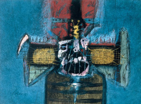 This mixed media piece, "Motanka", was made by Oleh Denysenko. Look at the layering and texture! The artist builds up this surface, almost like he's constructing something rather than just painting. You can really feel the hand of the artist here, can't you? It's not about hiding the process, but embracing it, making it part of the story. I keep coming back to the halo around the figure's head. It's not perfect, not a smooth circle, but more like a sun, radiating out in uneven bursts. And that cross on the face – is it a mask, a binding, or a kind of protection? It’s that tension between beauty and something a little unsettling, a little broken, that I find so compelling. Denysenko reminds me a bit of Antoni Tàpies, in the way he treats the surface as a field for exploration, a kind of archeological dig where the past is always present, peeking through the layers. Art, after all, is just a conversation between artists, a dialogue across time.