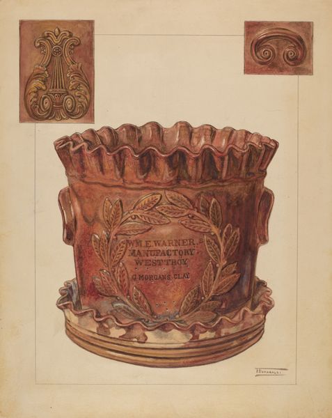 Helen Alpiner Blumenstiel made this drawing of architectural ornament, likely with pencil and wash. The muted tones and careful shading give the impression of age, like a forgotten relic. It’s interesting how Blumenstiel captures the three-dimensional form of the ornament. The textures are wonderfully rendered. Look at the details on the bird’s feathers and the rough surface of the wheat. You can almost feel the stone. The cross-hatching and blending of tones give the piece depth, making it jump off the page. What strikes me is the contrast between the solid architectural form and the wildness of the natural elements. It reminds me a little of the work of Agnes Martin, but with more grit and less geometry. Ultimately, it’s the tension between precision and looseness that makes this piece so intriguing. It invites us to see the world in multiple ways, questioning what is fixed and what is fluid.