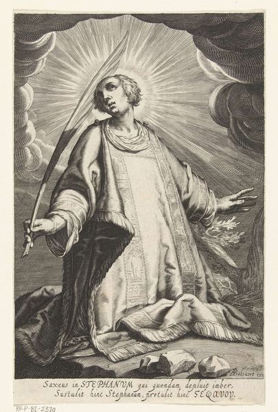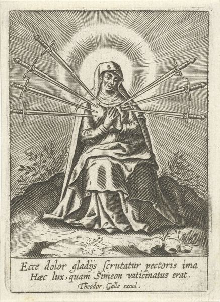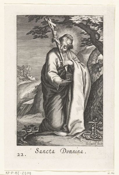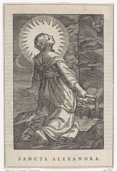 Editor: This print, "Heilige Maria als kluizenares," or Saint Mary as a Recluse, made in 1644 by Christoffel van Sichem II, has a stark, almost unsettling quality, doesn't it? It's a baroque engraving. The stark lines create such contrast. What catches your eye about this piece? Curator: What I find interesting here is the labor inherent in producing an engraving like this. Think about the process: the artist meticulously carving lines into a metal plate, the pressure required for each pull of the press, and how these reproducible prints circulated ideas and imagery far beyond a single canvas ever could. Does seeing this work on paper give you a different view than if it were painted? Editor: Definitely! It’s less about individual artistry, perhaps, and more about a collective process of reproduction and dissemination? How does this specific method connect to its historical period, the baroque era? Curator: Well, the Baroque period saw the rise of print culture. Consider the economics of it. Engravings like this allowed for religious and political ideas, even aesthetic styles, to spread to a wider audience at a fraction of the cost of paintings. Who was the audience of such work in the 17th century? Editor: Probably a more diverse segment of society, since it was more affordable than paintings. Did it perhaps challenge traditional patronage models for artists? Curator: Precisely! The means of production empowered the artist in a different way, although reliant on specialized skills like engraving. They were now crafting objects that catered to, and even shaped, the tastes of a broader market, thereby shifting control over consumption. And where are these objects eventually going to end up? Editor: Fascinating! So, looking at the materials – the ink, the paper, the metal plate – tells us about a shift in artistic control, production, and consumption during the baroque era. Thanks for illuminating that! Curator: Likewise! Now think about how the dissemination affected belief itself...