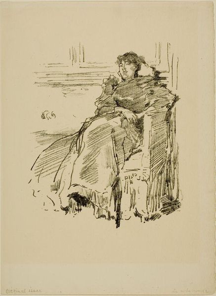 Curator: Whistler's "La Belle Dame Endormie," held at the Harvard Art Museums, is such a fleeting reverie, isn’t it? Like a secret whispered in pencil. Editor: It does feel intimate, almost voyeuristic. The subject’s vulnerability is palpable—likely a commentary on the limited agency of women during the Victorian era. Curator: Or perhaps simply a tender observation? Whistler often sought beauty in the everyday, finding poetry in commonplace scenes, like the simple act of resting. It’s like catching a glimpse of a dream. Editor: I see the dreamy quality, but I also read the title ironically. Sleeping Beauty suggests passivity, reinforcing societal expectations for women while subtly critiquing them. Curator: Maybe it's both. Whistler rarely gave us easy answers, did he? More like beautifully posed questions about how we see and feel. Editor: Absolutely. It’s this ambiguity that allows for such a rich dialogue, even centuries later.