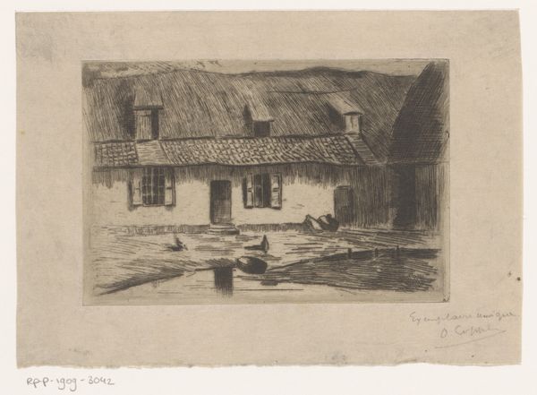 Editor: We’re looking at Charles Adams Platt's "Shanties on the Harlem," made around 1881 or 1882. It's an etching, and it has this hazy, almost dreamlike quality. It feels quiet, even a bit melancholic. What strikes you when you look at this piece? Curator: It speaks to the evolving role of the artist in the late 19th century. The choice of subject matter—humble dwellings, the working waterfront—reflects a shift away from idealized landscapes and towards a focus on everyday life. Why depict the "shanties" instead of grand mansions? It suggests a deliberate engagement with the social realities of the time, a nascent interest in documenting urban development and its effects on ordinary people. Editor: So, you see it as a kind of social commentary? Curator: Partially, but also an aesthetic statement. The etching medium itself facilitated wider distribution, making art more accessible. Platt, who later became a renowned landscape architect, captures a transient moment in Harlem’s history, when rural life intersected with burgeoning urbanity. The image exists not merely as documentation, but as art, raising questions of the political function of art within society. Consider how the work contrasts with other depictions of Harlem during this period, like celebratory portrayals, or total omission. Editor: That's interesting, it's like the choice to focus on these simple buildings is a statement in itself, especially considering the potential for romanticizing the area. Curator: Precisely. The shanties become a potent symbol when contextualized within broader socio-economic and political currents. And how the art is later received becomes equally part of its evolving history. Editor: I hadn’t thought about the social context that deeply before, thanks for making me consider art’s purpose within its history. Curator: My pleasure. I was overlooking the emotional impact the choice to present ordinary structures creates, so thanks to you as well!