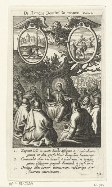 Boëtius Adamsz. Bolswert rendered this engraving of the miraculous feeding of the five thousand without a date. At its heart, the haloed Christ is shown blessing bread and fish, symbols of spiritual and physical sustenance. This iconography stems from early Christian art, where meals signified divine communion and nourishment. Observe the positioning of Christ and the food, mirrored in earlier depictions of sacrificial offerings. This act of providing parallels similar motifs across cultures where food is used to connect humanity to the divine. Think of the Last Supper, where the sharing of bread and wine becomes a cornerstone of Christian liturgy. The image engages our subconscious understanding of sacrifice, abundance, and divine intervention, stirring deep emotional responses tied to our primal needs and spiritual longings. The visual echoes across time highlight our enduring need for symbols that represent hope and community. They remind us that symbols evolve, yet still carry echoes of their original power.