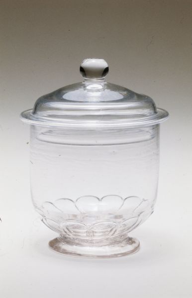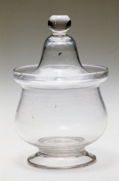 Editor: Here we have a glass lamp base, estimated to be from the 18th or 19th century. The form is very elegant. What's striking to me is how functional it is as a base. What do you make of it? Curator: Well, let's consider the labor involved in producing glass of this kind, especially in the 18th and 19th centuries. We need to appreciate the specific technical skill necessary. What sort of social conditions make it desirable to invest so much labour in producing such objects? Editor: So, rather than just appreciating its form, we need to think about the process of making it? Curator: Precisely. Think about where the raw materials came from: The social ramifications of resource extraction for glassmaking, and distribution networks necessary. Even in its simple form, this lamp base speaks to a whole system of production and consumption. What purpose did the lamp serve in the society that made it? Editor: It probably meant access to a longer workday, the ability to read and write later into the night, or increased safety navigating the house at night. But did the cost of such lighting impact who could afford it? Curator: Exactly! The question then becomes, how did something like a glass lamp base reinforce existing social structures? Was it available only to a certain class? How might access to its functional use shape behaviours or societal engagement, compared to communities where such items aren't easily acquired? It may be more impactful as a marker of social mobility or stability than just as a functional item. Editor: That's fascinating, thinking about how this object connects to larger social systems. It highlights labor, materiality, and consumption – I see it in a totally different light now. Curator: Indeed, and recognizing those links can reveal a lot about the past, and even inform our present understanding of consumerism and resource usage.