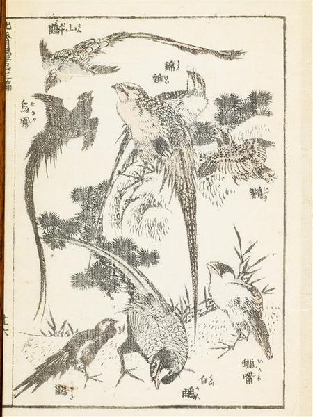 Curator: This ink drawing, titled "Three Geese," is by the celebrated Japanese artist Katsushika Hokusai. Editor: It evokes a feeling of starkness and freedom; I’m immediately drawn to the contrast between the dark geese and the negative space. Curator: Hokusai’s work often uses this kind of minimalist approach, reflecting the influence of Zen Buddhism on Japanese art and culture. We might consider how this simplicity challenges Western notions of representation and beauty. Editor: Absolutely. And how do we interpret the geese themselves? Are they merely birds, or symbols of something larger within the socio-political context of Japan at the time? Curator: Perhaps both. The goose, historically in East Asian art, signifies autumn and the changing seasons; but also familial bonds and safe returns. Understanding these readings enriches our perspective. Editor: It’s fascinating how much meaning is packed into such a seemingly simple image. Curator: Indeed. The work invites us to contemplate the relationship between nature, art, and the self.
