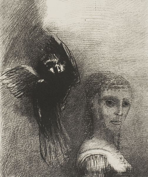 Editor: We’re looking at "Confiding in the Night" by Henri Fantin-Latour, created in 1888 using charcoal. The piece feels so intimate; it's like catching a private moment. What formal elements stand out to you? Curator: Immediately, the dramatic chiaroscuro commands attention. Note the pronounced contrast between the illuminated figure and the oppressive darkness that envelops her. The composition adheres to a subtle geometry; observe how the verticality of the wall opposes the gentle curve of her posture, creating a visual tension. Editor: It’s interesting how the stark contrasts create such a somber tone. Do you see any kind of philosophical intent in this play of light and dark? Curator: Precisely. The application of charcoal, with its capacity for gradated tonality, lends itself to the exploration of metaphysical themes. One could posit a semiotic reading of light as consciousness and darkness as the unknown. Consider, too, the texture—the artist coaxes a palpable sense of materiality from a humble medium. The figure isn't just present; she *exists* within the charcoal's embrace. Editor: So, focusing on these formal properties allows us to engage with more profound concepts, rather than thinking about historical context. Curator: Yes. Our methodology allows us to concentrate on what’s inherently present in the work, bypassing exterior influences. How does the use of negative space influence the overall effect, in your opinion? Editor: The negative space around her heightens the sense of isolation and introspection, actually adding to the visual texture. Curator: A keen observation. The artwork then transcends being simply representational; it achieves a self-referential state. Editor: This perspective really focuses my understanding. Thanks for sharing your expertise. Curator: The pleasure was mine. Viewing through this lens allows a heightened appreciation of pure aesthetic components.
