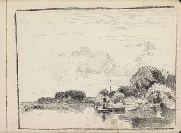 Editor: So, this is Augustin Hirschvogel’s "River Landscape with a Footbridge" from 1546, rendered in ink, I believe as a print, maybe an engraving. I'm immediately struck by the detailed linework and the panoramic view. It's a bit like looking into a tiny, self-contained world. What catches your eye when you look at this piece? Curator: Well, I see a confluence of social and aesthetic concerns characteristic of the Northern Renaissance. Hirschvogel, working in this period, was part of a broader movement that began to portray the natural world with greater accuracy, yes, but it was more about civic identity. Do you notice how the river seems to bisect two distinct settlements? Editor: I do, almost like two communities in dialogue. Curator: Exactly. Landscapes at this time weren't just pretty scenes, they were powerful tools in constructing and conveying civic pride. How would you characterize the buildings within this scenery? Editor: Well, on the left they are humble, and the other side with the stone tower feels established... maybe affluent? Curator: Precisely! Printmaking allowed artists like Hirschvogel to disseminate imagery widely, standardizing visual representations of locales. Therefore creating idealized, propagandistic imagery. A simple engraving served the important cultural work of defining civic identity in the 16th century. Editor: I never considered landscapes as active players in the construction of identity. I just assumed artists painted pretty landscapes to please patrons. This gives me a completely new perspective. Curator: It shifts our perception, doesn’t it? Seeing art as a function of its socio-political moment. Editor: Definitely food for thought. Thank you.