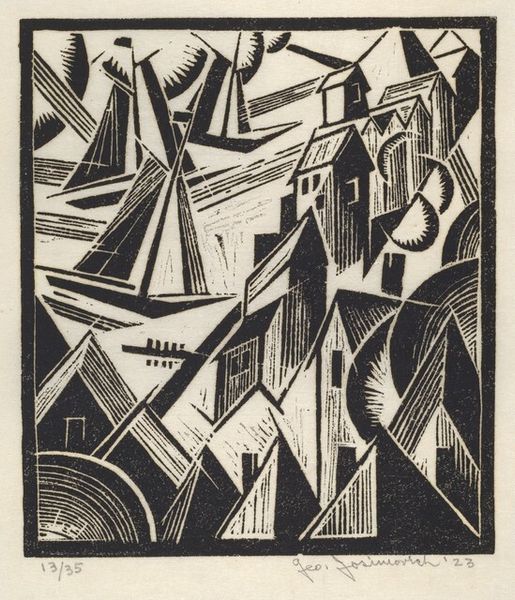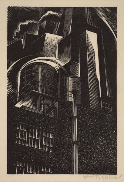 Huib Luns made this striking woodcut, "Raadhuistoren," in 1913, and right away, I’m struck by the graphic quality, the pure contrast of black and white, and the incredible detail he coaxes from the wood. It's clear he was totally absorbed in the process. Look at how Luns carves the sky around the tower. The marks aren't just filling space; they become these dynamic lines that almost feel like wind swirling around the architecture. There's a real sense of movement, a tension between the solid, still structure of the tower and the restless energy of the sky. That one dark, solid shape at the base of the tower really grounds the image, and the eye is drawn back to the intricate details, up and up the tower. There's something about Luns's precision that reminds me a bit of Piranesi's architectural prints. Both artists share a fascination with detail, with structure, and with the interplay of light and shadow. What is so incredible about looking at art is that these conversations between artists, across time and space, keep happening.