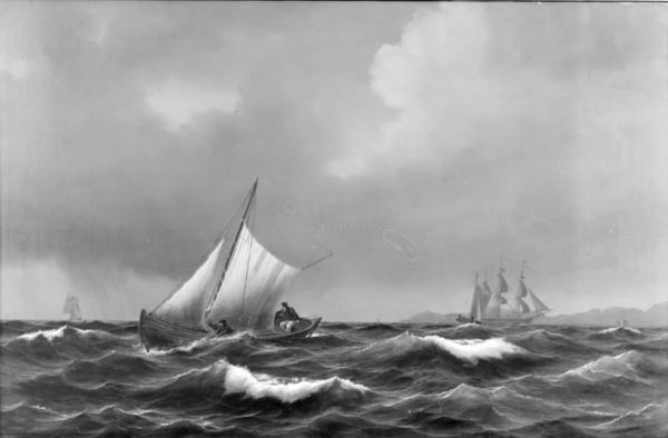 Thorolf Pedersen made this painting, "Brede sejl over Nordsjø går" - or "Broad sails crossing the North Sea" - with oil on canvas. This epic seascape invokes the Viking age and resonates with 19th-century nationalism. The Danish state was struggling to maintain its authority over territories like Norway, Iceland, and Greenland. The Vikings were important symbols in this fraught political landscape. Seen as intrepid explorers, they reflected the country's maritime power. But the painting’s sombre mood also hints at the decline of Danish influence. Note the turbulent waves, the dark sails, and the indistinct figures on board ship. This isn’t a celebration of military might. Instead, Pedersen gives us a melancholic meditation on a nation's past glories. To understand more, you might look at how other artists of the period depicted the Vikings, and compare this to the narratives that were emerging from Danish museums and historical societies at the time. What were the prevailing attitudes and beliefs about the Vikings?