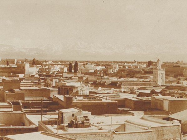 This is an anonymous photograph of a city, probably in the Middle East, and it was taken from the air. It's really interesting how, even without knowing who made it, we can still get a sense of the artist's perspective through the marks they choose to make, or in this case, the view they chose to capture. What strikes me most is the texture – or lack thereof. Everything is flattened, rendered in shades of gray. It's like the artist is trying to strip away the specifics and show us something more essential about urban spaces. The light is so even, as if the sun is shining without shadows. It reminds me of certain abstract paintings where the artist layers and blurs forms to create a sense of depth and mystery. Look at the way the buildings huddle together, a mass of low-lying structures pierced by the occasional dome or minaret. It makes you wonder about the lives lived within those walls. Maybe this photograph is meant to remind us that art, like cities, is a collective endeavor, built layer upon layer. It also makes me think of Gerhard Richter's blurry photographs - history becomes a haze!