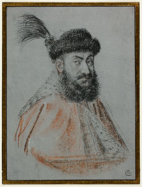 Ottavio Leoni made this portrait of a cardinal, possibly Alessandro Peretti Montalto, using black and white chalk on paper. This isn't bronze, marble, or oil paint, the materials we might expect for portraying someone of high status in the 17th century. Leoni's choice of chalk on paper is significant. The immediacy of the medium allowed for quick, direct sketches, making it ideal for capturing a likeness efficiently. The texture of the paper and the way the chalk sits on its surface give the portrait a soft, almost intimate quality. The drawing feels accessible, less formal. The ease and relative low cost of chalk and paper compared to traditional portraiture materials suggests a shift in artistic practice, perhaps influenced by a growing market for art beyond the elite. Leoni was known for his portraits, and his choice of materials democratizes the process, making portraiture more accessible both to the artist and possibly to a wider range of patrons. This challenges the established hierarchies of art and patronage.