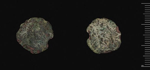 Curator: This copper coin, or "Fulus," minted by Rukn ad-Din Sulayman Shah, immediately evokes a sense of history, doesn't it? Editor: Absolutely. It's small, damaged, and corroded—worn smooth with age. It's clearly been handled and circulated extensively. Curator: Indeed. It features a horseman on one side and Kufic script on the other. The horse and rider motif often symbolizes power and authority. Editor: I'm more interested in the metal itself. The wear speaks to the trade routes, the economic systems, and the hands through which this small piece of copper passed. What labor went into extracting it, refining it, and striking it? Curator: And the script acts as a constant cultural reminder of the ruler's presence, a tangible link to a specific time. Editor: For me, the real power is in the material—how such a common substance connected a vast network of people and places. Curator: It’s amazing to consider how an image can carry so much emotional weight across time, even on a coin. Editor: And how its very existence—its materiality—testifies to the interconnectedness of society.