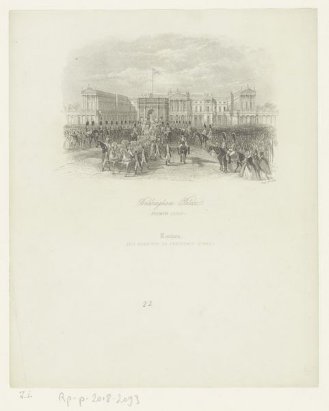 Pierre Emile Tilly made this print in 1890, depicting the funeral procession of Willem III, King of the Netherlands. It's an engraving, which means the artist would have used a tool called a burin to carve the image into a metal plate, probably copper. The resulting lines are very fine and precise, allowing for a high level of detail. Look at the way he’s captured the texture of the crowd, the architecture, and the horses. The image is made up of thousands of tiny marks, each one carefully placed, so the labor intensity of this work is palpable. Engraving was a skilled craft, often associated with commercial printing, meaning that even a royal event like this was translated into a commodity, available for purchase and circulation. That gives you a sense of the society at the time, one in which even grand spectacle was mediated by the mechanics of reproduction. It reminds us that art is always embedded in systems of labor and class.