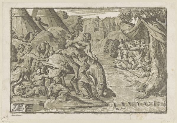 This is an illustration of a story from Ovid’s "Metamorphoses", likely dating from after its rediscovery in 1070. The tale reflects on the ways institutions of power affect the lives of those they govern, with themes of transformation and consequence. The image creates meaning through classical references, like the bathing nymphs and the hunter, interwoven with a northern European sensibility in the detailed forest setting. Ovid’s work was very popular during the medieval period, offering a trove of narratives that explored human nature and morality, often in the context of encounters with the divine or supernatural. The Catholic Church and royal courts were important patrons of such work. Analyzing such art, the historian would consider the social function of these tales in shaping cultural values and questioning authority. Close study of the text, the life of the author, and the artistic style give insight into the interplay between text, image, and social context.