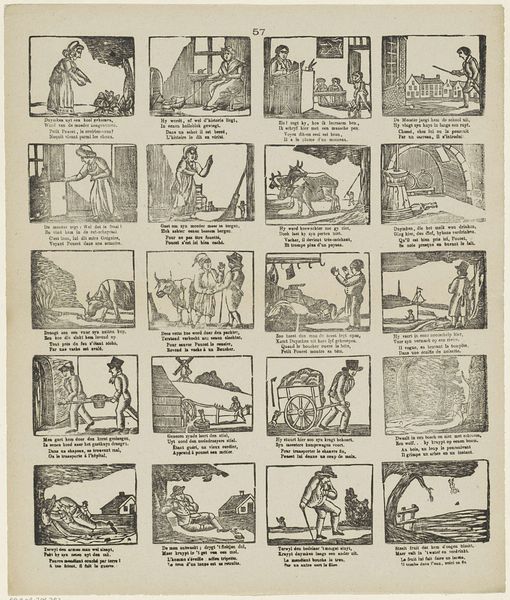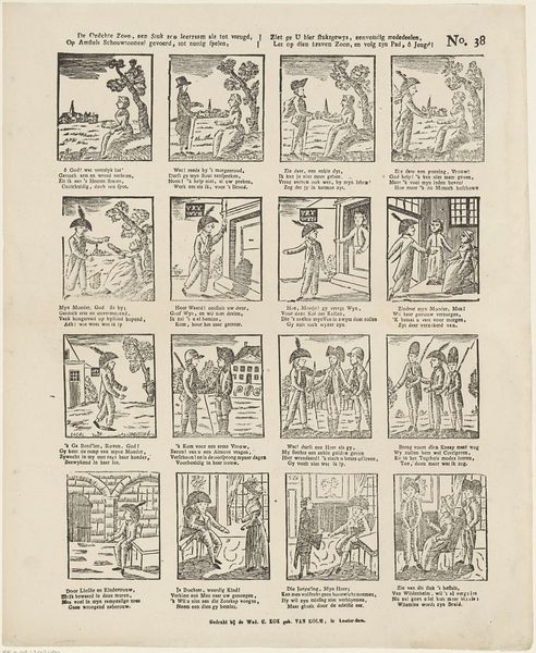 This print was made by Erven de Weduwe Jacobus van Egmont, using an engraving technique. This was a reproductive method, a way of circulating images widely and cheaply, which speaks to its social context. Engraving involves cutting lines into a metal plate, applying ink so it sits within those recessed lines, and then pressing paper against the plate to transfer the image. Look closely, and you can see the crisp precision the technique allows. It is a labor-intensive process, demanding skilled handwork to create such detail. Consider too, the social implications. This wasn't fine art for a wealthy patron, but a printed sheet, likely sold at a modest price. Its subject matter, children at play, is very much in keeping with this broader reach. So, next time you encounter an engraving, remember the handwork involved, the ingenuity of its production, and how these qualities contribute to the print's meaning and purpose.