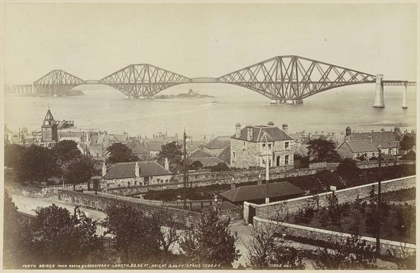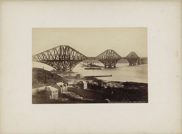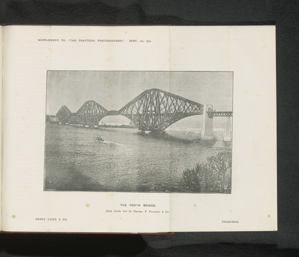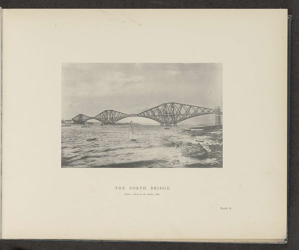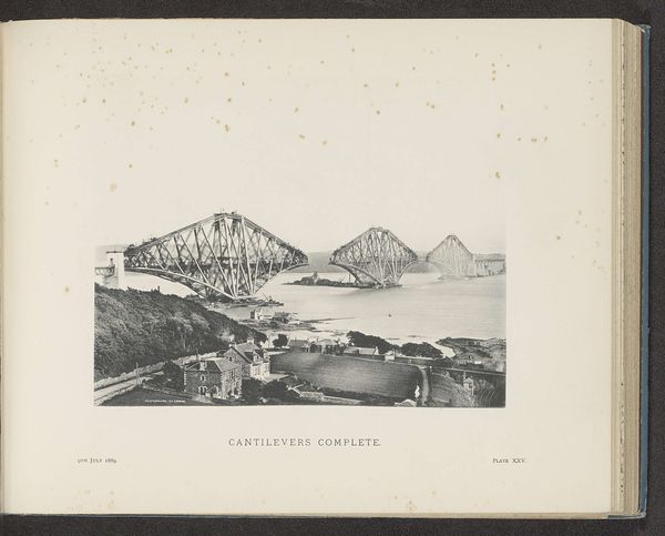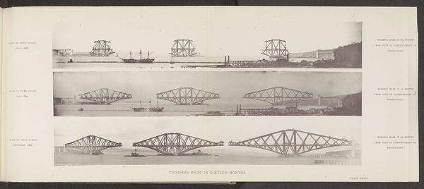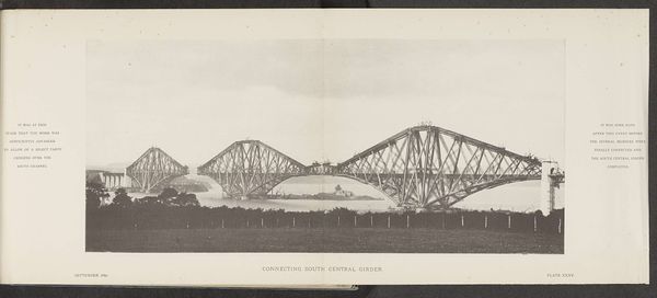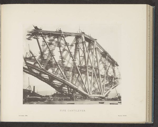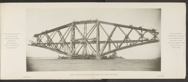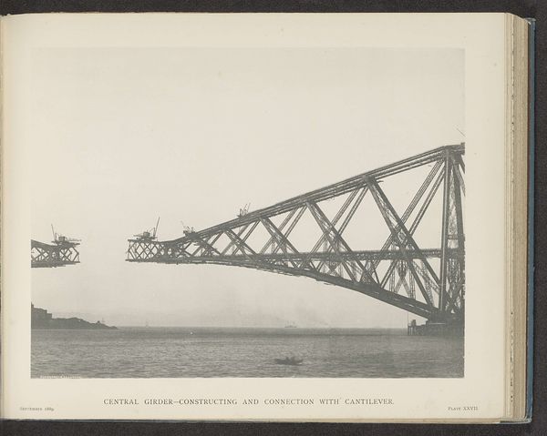 This is a photograph of the Forth Bridge in Scotland, captured during its construction. It depicts the cantilever arms reaching out from Queensferry and Inch Garvie, emphasizing the innovative engineering of the time. The image creates meaning through its stark visual contrast between the industrial structure and the natural landscape. Built in the late 19th century, the Forth Bridge embodies Victorian Britain's industrial prowess and imperial ambitions. The bridge also played a role in asserting Britain's engineering dominance in the face of global competition. As well as marking a shift towards modern materials and construction techniques it also stands as a monument to human ingenuity. Understanding this image requires us to delve into the archives, examining engineering reports, and social histories. These help contextualize the Forth Bridge within its socio-economic and institutional framework.