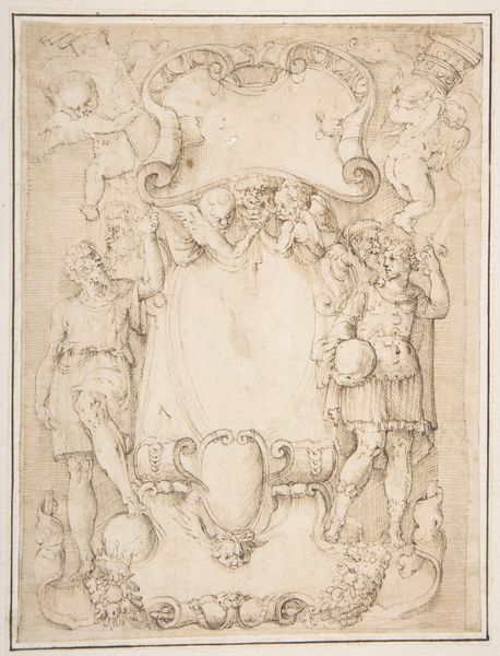 This heraldic design for Henry IV and Marie de Medici was rendered anonymously, at an unknown date, with pen and brown ink. Heraldry was a visual language used by the aristocracy to communicate power, lineage, and alliances. The visual elements are not accidental or merely decorative, and decoding the symbolic meanings gives us insight into the priorities of the ruling class in the early modern period. This drawing, likely made in France, demonstrates an aspiration to prestige, and the institutional power of the monarchy. Visual codes, such as the crown and cherubic figures, connect the rulers to divine authority. Lilies, or fleurs-de-lis, symbolize the French monarchy, while balls reference the Medici family of Florence. By combining these symbols, the design announces the union of these two powerful families. Historians can use documents, like letters and financial records, to investigate how royal marriages influenced alliances, trade, and military strategies. Art like this reflects how political and social structures shaped the imagery of the time.