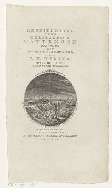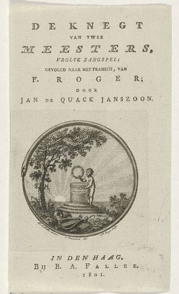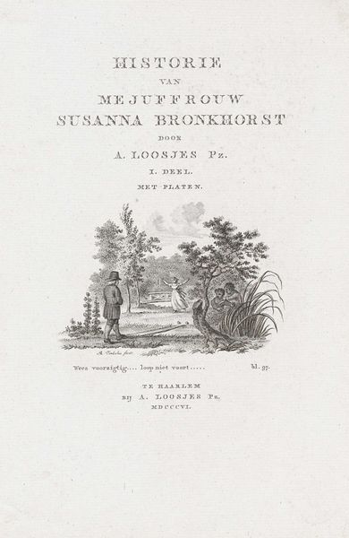 This is the title page for Adriaan Loosjes’s book "Frank van Borselen en Jacoba van Beijeren," made in 1790 by Reinier Vinkeles. It's an engraving, meaning that Vinkeles would have used a sharp tool called a burin to cut lines into a metal plate, likely copper. The plate is then inked, and the surface wiped clean, leaving ink only in the incised lines. High pressure would have been applied to transfer the image onto paper. Look closely, and you can see the crisp fineness of the lines, which create a sense of depth and texture, particularly in the decorative vignette. The technique allowed for the relatively easy reproduction of images. This was crucial for disseminating information and literature in a rapidly expanding print culture, and that in turn fueled literacy. Engravings like this connected skilled artisans like Vinkeles to the broader networks of publishing, commerce, and intellectual life that characterized the 18th century. It shows the ways in which craft skills were essential to the circulation of knowledge and the development of public discourse.