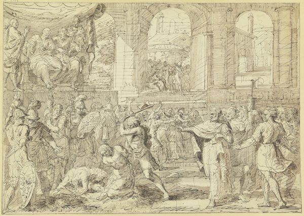 This drawing, of unknown authorship, captures a scene of Christ preaching, rendered with pen and brown wash over traces of graphite. The outstretched hand, a prominent motif, immediately draws our attention. This gesture—the open hand, palm outward—is a symbol of both benediction and dialogue. We see this same gesture in ancient Roman oratory, a means of engaging the crowd. The oratorical gesture evolves; consider its parallel in Renaissance paintings of John the Baptist, where the pointing finger directs the viewer's gaze toward the divine. This visual echo, across time, carries a potent psychological charge; it taps into our collective memory, stirring deep-seated emotional and spiritual associations. The cycle is never linear, but always returns, transformed, carrying traces of the past into the present.