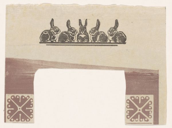 Bernard Willem Wierink made this print of rabbits using etching. The stark contrast and the repetitive rhythm of the rabbits create an arresting visual experience. The rabbits, uniformly spaced on a single line, reduce the animals to a series of similar shapes. Wierink’s reduction of the rabbits to simplified forms reveals an understanding of the underlying structure. This technique can be seen through semiotic theory, where each rabbit becomes a signifier. The composition suggests a sense of order and categorization, almost as if the rabbits are specimens in a scientific study. The use of line is also crucial here. The single line on which the rabbits are placed both grounds them and abstracts them. This etching prompts us to question how we perceive and categorize the natural world.