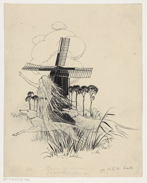 This ink drawing depicts a windmill in a landscape, capturing a quintessential emblem of Dutch ingenuity. The windmill, with its rotating sails, has long been a symbol of man's ability to harness nature's power. Consider the symbolic weight carried by such structures: since antiquity, the turning wheel has been a potent motif, evoking cycles of life, the revolving cosmos, and the relentless march of time. Think of the Buddhist "Wheel of Dharma", or the medieval "Rota Fortunae". Here, the windmill's turning blades might echo those ancient symbols, now grounded in the practical task of grinding grain, a link between heaven and earth. This fusion of the mundane and the symbolic is no accident. The cultural memory embedded in the windmill allows us to engage with something timeless. Like a recurring dream, it whispers of our continuous struggle to find balance.