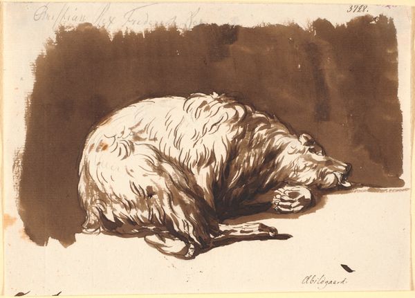 Editor: Here we have William Strutt's "A Lioness Preparing to Spring," created around 1889, employing charcoal, pencil, and watercolor. The image feels quiet, almost contemplative, despite the latent power of the subject. What elements of the composition stand out to you? Curator: The artist's control of line and tone is evident. Note how Strutt uses the interplay between the graphite and watercolor to build a sculptural form of the lioness. The anatomical structure is well observed, a key concern within academic art practices. What is more arresting is the negative space around the animal. Editor: Yes, it is like there are multiple sketches overlaid. The lioness is the only truly rendered subject. Curator: Precisely! The effect creates a dynamic tension. It almost suggests that the idea, the _concept_ of the lioness, is what's of interest, rather than the physical representation. The preparatory sketches serve less as background than as explorations of form, which never coalesce into a finished piece. Editor: So it’s less about a lioness, specifically, and more about how its shape is rendered? Curator: In essence. Consider, too, the strategic use of line weight and shading. Strutt draws the eye to specific areas like the face and paws to underscore an emphasis on realism, yet contrasts these parts with other, hazier renderings. This strategic ambiguity and its artful balance makes this a powerful piece. It has shifted our understanding hasn't it? Editor: Definitely. It started out representational, and now I am seeing the underlying structure. Thanks for sharing this viewpoint.