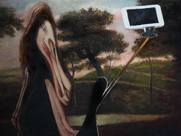 Nick Alm made this painting, "Stranger on the Platform," and it feels like a memory, all muted and soft. The way he builds up the image feels so process-oriented, like he's thinking through paint. Look at the surface, how the colors seem to blend into each other. The blues and grays create an atmosphere that’s heavy, almost melancholic. The paint looks pretty thin, like washes layered one on top of another, and this adds to the dreamlike quality. I am drawn to the way that the figures are positioned, cut off from the frame, but how the artist has captured the texture of their clothes and the way the light hits them feels very real. Alm's painting reminds me a bit of Edward Hopper, but with a contemporary twist. Both artists capture a certain kind of loneliness and alienation, but where Hopper is stark and clear, Alm is blurry and indistinct. Art is this ongoing conversation, a back-and-forth across time and space, isn't it? And ambiguity? That's where the real juice is.