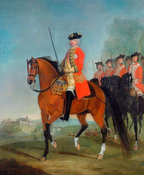 Editor: This is Thomas Jones Barker’s “Edward Hopper Hebden,” an oil painting from 1868. There's a serene formality to it, the subject posed regally on horseback against a muted landscape. It reminds me of a scene from a classic novel. What stands out to you when you look at this work? Curator: Well, aren’t we all just portraits waiting to be painted? For me, it's that curious sliver of blue sky peeking through the otherwise grey clouds that catches my eye. It feels like a stolen moment of optimism in what is, after all, a very composed, very proper setting. I wonder, was this intended to subtly question the established order? Or am I simply projecting? Editor: That’s interesting; I hadn’t considered the potential tension. The bright red of his jacket, though… doesn’t that speak to a certain confidence? Curator: Ah, the red! A splash of audacity against the earth tones, certainly. But look at how carefully that red is contained by the overall composition. Is it confidence, or a carefully curated performance of confidence? And the horse – does its somewhat weary posture tell another story? It’s all about those layered narratives, don’t you think? Editor: It is. I was initially struck by the surface, but now I see there’s much more going on beneath it. Curator: Precisely! It is like a visual poem, isn’t it? Revealing its secrets line by line, inviting us to pause, to reflect, and ultimately, to find a little bit of ourselves within its strokes. What do you think, would Hebden approve of our musings? Editor: I think he'd be intrigued, hopefully finding our interpretation…colorful.