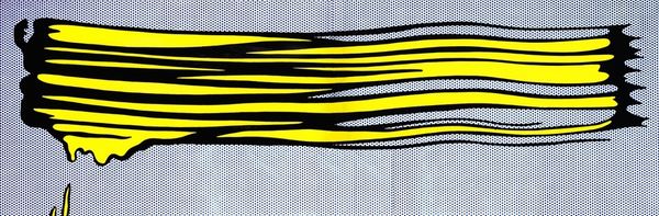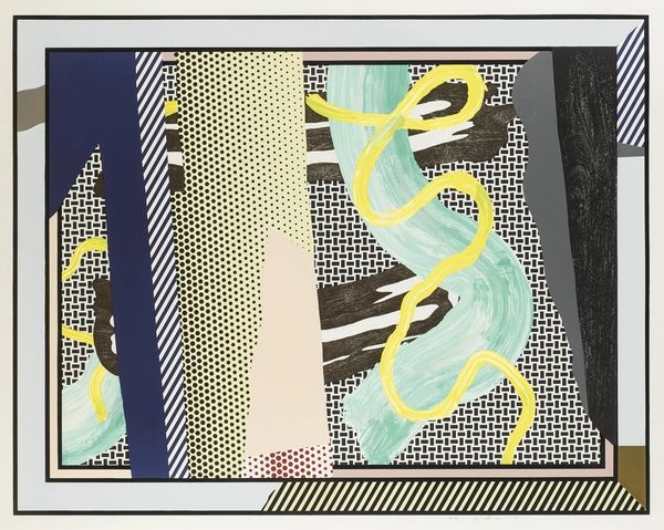 Editor: So, this is Roy Lichtenstein's "Brushstroke" from 1965, made with acrylic paint. I find the cartoonish exaggeration really striking, like it's commenting on Abstract Expressionism in a bold, almost ironic way. What do you make of this work? Curator: Well, precisely! In the mid-60s, Lichtenstein directly confronts the established art world. The Abstract Expressionists, like Pollock and de Kooning, were celebrated for their spontaneous gestures. Lichtenstein, however, takes that gesture, the brushstroke itself, and meticulously reproduces it, using his signature Ben-Day dots, in a mechanical, almost mass-produced style. Editor: So, he's kind of poking fun at the idea of the artist's unique touch, by making it look so… artificial? Curator: Exactly. He’s questioning the cult of originality and the artist-as-genius. Consider the timing – this is a period of immense social and cultural change. Mass media is booming, consumerism is on the rise, and Lichtenstein uses those visual languages, like comic books, to challenge high art. Is he critiquing it, celebrating it, or something in between? Editor: I guess that's the interesting ambiguity of Pop Art, right? It uses the visual language of consumer culture, but it's not always clear if it's endorsing it or critiquing it. Curator: And that ambiguity is exactly what made it so controversial and so compelling. Lichtenstein's work really makes you think about the role of art in a society saturated with images. This “Brushstroke” becomes an object, a commentary on art’s changing place. Editor: It's fascinating how a seemingly simple image can hold so much cultural weight. I will definitely consider the historical and social implications when I look at other pop-art paintings. Thanks! Curator: My pleasure. Hopefully this helped you to recognize that art never exists in a vacuum. It's always in dialogue with the world around it.