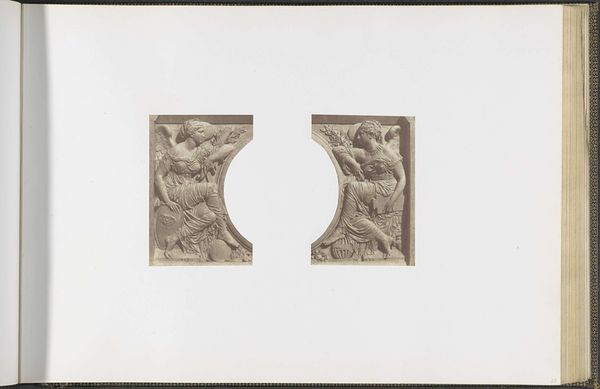 Curator: This print, likely made before 1870, captures a section of decorative framing within the Palais des Tuileries in Paris. Edouard Baldus is the artist credited with this particular photograph held in the Rijksmuseum collection. Editor: My first thought is "opulence." The intricacy of the carvings, captured with such clarity, really speaks to the ambition of that era. There is so much botanical detail in a neoclassical style, creating a visual feast for the eyes. Curator: Indeed. Baldus's photograph gives us a valuable record of the Palais, a building that held significant symbolic power, before its destruction shortly after this image was created. We should note the emphasis on symmetry typical of neoclassical designs that spoke of order and rationality. Editor: The symmetrical balance certainly contributes to that sense of control. Look at how the organic forms like acanthus leaves and what appears to be stylized floral elements are rendered so precisely. Almost as if to harness nature within the strictures of classical design. This photograph freezes a cultural moment laden with meaning and grandeur. The iconographic weight of these symbols must have resonated powerfully with contemporary viewers. Curator: Precisely. Think about how photography, still a relatively new medium, was being deployed to document and disseminate these symbols of imperial power, influencing taste and solidifying political ideology across a wider public. The decorative language spoke volumes. Editor: Even the fragments we see presented here offer insights into how those architectural motifs, imbued with history, influenced contemporary perceptions of authority and national identity. These were, effectively, emblems of power. Curator: And with the destruction of the palace, these photographs become even more valuable, representing the remnants of the past and influencing our modern-day image of a pivotal time in French history. Editor: Studying the symbolism and history captured here, even in this fragmented presentation, it offers a richer perspective on the era than a thousand words could convey. It serves as an intriguing look into cultural memory through decoration.