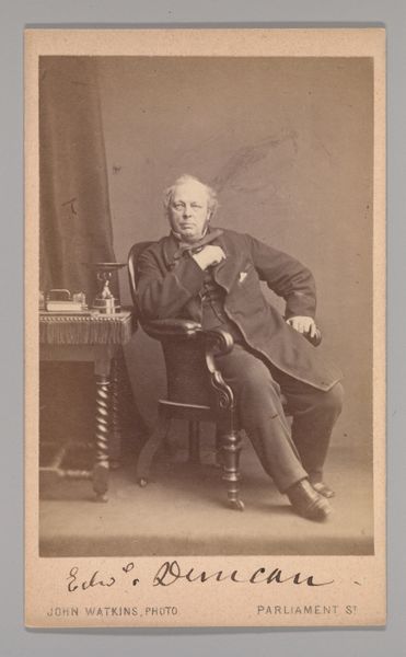 G. Hoogwinkel Jr. made this portrait of a man using photography sometime in the mid- to late-19th century. It exemplifies the rise of photography as a popular medium for portraiture, moving from the preserve of the wealthy to a broader middle class. Consider the context of the Dutch Golden Age and the rise of a powerful merchant class in the Netherlands. This new class had the economic means to commission portraits, reinforcing their status and identity through visual representation. Photography offered a modern, and perhaps more democratic, alternative to painted portraits, although the sitter’s formal pose and attire still speak of a certain social standing. Historians would use census records, social histories, and studies of photography's development to better understand this work. The image becomes a valuable document that reflects the changing social landscape of the time.