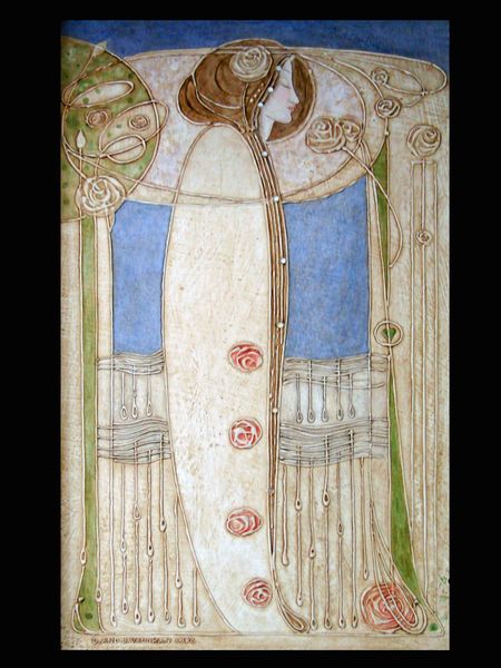 This panel for a dining room by Charles Rennie Mackintosh is a lesson in how shapes can evoke the essence of things. Look at how he uses these soft, chalky colors and gentle curves to suggest figures and flowers. The surface has a subtle texture, like it's been gently brushed, and the paint seems almost translucent in places. I find myself drawn to the way the roses are rendered – not with precise detail, but with simple, swirling shapes that hint at their delicate beauty. It’s like Mackintosh is inviting us to see the world in a new way, reducing it to its most essential forms. It reminds me a little of Hilma af Klint, who was also exploring abstraction as a way to connect with something deeper. What I appreciate in both artists is their willingness to embrace ambiguity and to suggest rather than dictate. Art becomes a conversation, not a lecture.