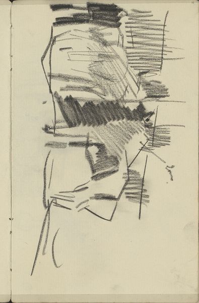 Curator: Take a look at this quick sketch by George Hendrik Breitner, made around 1912. It’s titled "Gezicht op het Rokin te Amsterdam bij het Beurspoortje" which translates to "View of the Rokin in Amsterdam at the Stock Exchange Gateway.” Editor: My immediate impression is its sketchiness. There’s a palpable sense of speed and transience captured by these decisive pencil strokes. Curator: Indeed, it really epitomizes Breitner’s approach to urban life. He was known for capturing Amsterdam's street scenes and people with this immediacy. His style aligned with Impressionism but grounded in a more realistic, even gritty, perspective of everyday life. It was a far cry from academic ideals. Editor: I'm particularly struck by the use of line. See how the lines create depth despite being so minimal, almost abstract. There’s a scaffolding of lines that seems to denote form without really defining it completely. The eye fills in the rest. Curator: Yes, Breitner wasn’t aiming for photorealism; instead, he strived to convey the atmosphere of the city. He wasn’t from an academic background but instead sought to communicate what the city was during the changing social and political moment of the Netherlands in the early 20th Century. Editor: What’s really interesting is how this approach makes the drawing so modern. Its incomplete quality emphasizes process and perception. How Breitner *sees* is what’s being shown. Curator: Exactly! Also note the lack of detail—Breitner focuses on suggestion, prompting the viewer to become an active participant in interpreting the scene, and by that the city's complex socio-economic life. He was really capturing the ethos of a changing world, the transformation of Amsterdam. Editor: A great way to create a drawing as lived experience, really. So simple and subtle, yet so visually compelling. It certainly invites a prolonged, engaged study of the depicted structures. Curator: Agreed. Breitner understood that capturing the dynamism of modern life meant embracing incompleteness.