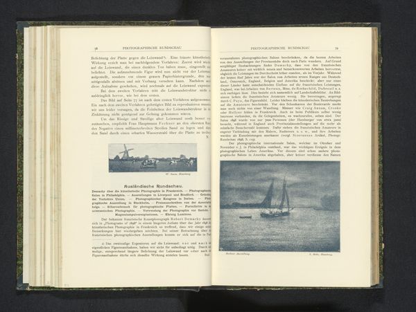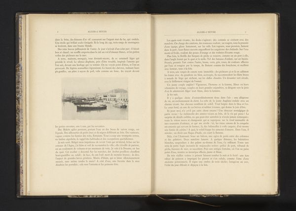 Curator: Look at this fascinating page from Paul Nowaczek's sketchbook, predating 1899, featuring a harbor scene in Naples. The level of detail achieved with what appears to be pencil or ink is quite remarkable. Editor: Yes, my initial impression is the contrast; the image itself feels light and airy, almost dreamlike, yet the surrounding text with its aged paper suggests weight and history. It is an intriguing juxtaposition. Curator: Absolutely. The choice to include this particular image within what appears to be a larger textual discourse offers clues. Considering Nowaczek's perspective, the image serves as a visual document of industrial activity—fishing vessels, dockyards, hinting at labor and commerce central to the Neapolitan economy. Editor: I find myself drawn to the linear perspective achieved, even within the constraints of a smaller-scale drawing. Notice how the lines of the docks converge, pulling your eye deep into the pictorial space. The use of shading is also worth mentioning, creating volume and depth without relying on color. It provides this atmospheric perspective with minimal means. Curator: This image, nestled in the middle of this book is quite intriguing. It seems like a preparatory study and the material conditions of its creation–the sketchbook, the pen, the time taken – tell a story of the artist's engagement with both artistic creation and documentary of a moment in the city’s economy. Editor: But we should not reduce the work simply to its role in documentation. By its masterful rendering of light and form, this port scene communicates much about its urban experience in late nineteenth-century Naples, while displaying Nowaczek’s impressive skill. Curator: You're right; it’s a confluence of intent and aesthetic execution, really. Looking at it, one gleans something of that spirit but also understands it in its proper role of visual culture, commerce, industry, and the individual artist at work, processing his experiences through skillful and sensitive craft. Editor: Yes, this image captures more than a specific place, in its deliberate construction, arrangement of forms and careful manipulation of light. The artist manages to evoke a certain nostalgic feeling. Curator: Seeing them like this is truly insightful to think of. I wonder if our listeners are struck similarly.